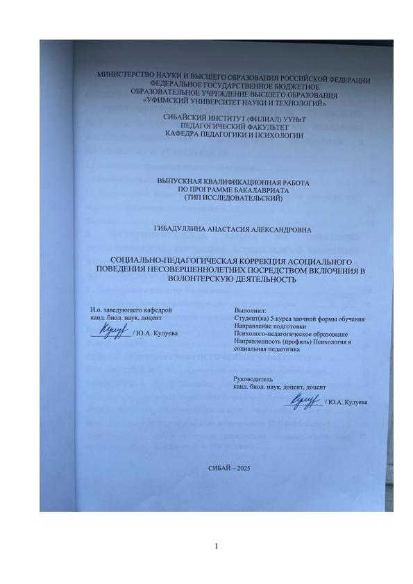 Психология; бакалавриат; ВКР; поведения; волонтер; коррекция