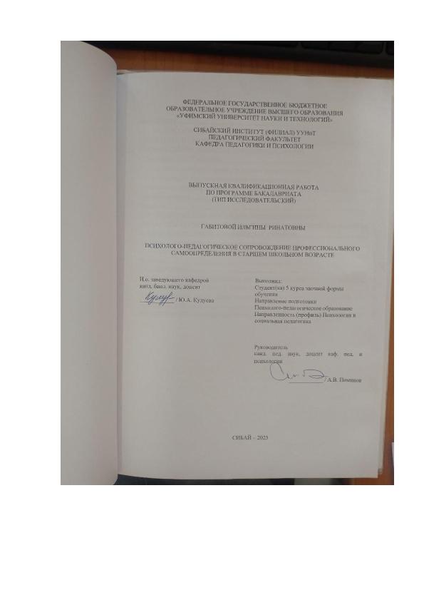 Психология; бакалавриат; ВКР; самоопределения; сопровождение; определить