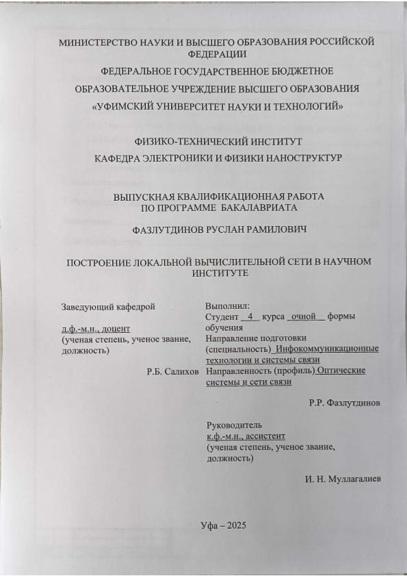 бакалавриат; ВКР; классификация компьютерных сетей; сетевые устройства; кабельная система; серверное оборудование; создание локальных сетей