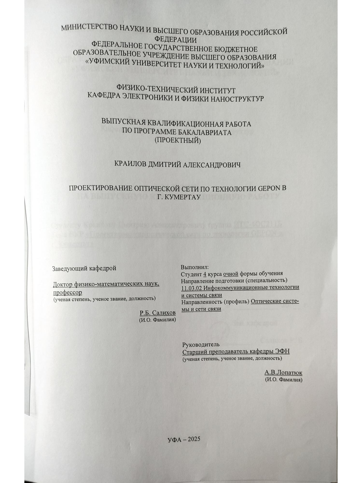 бакалавриат; ВКР; проектирование оптической сети; оборудование узла связи; технологии GEPON; надежность ВОЛС; потенциал волоконной оптический системы
