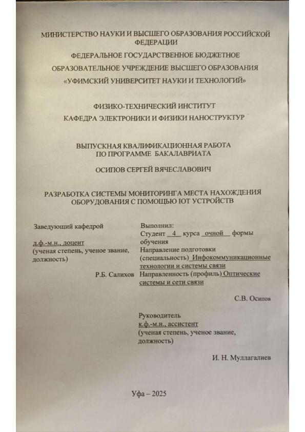 бакалавриат; ВКР; Интернет вещей (IoT); система мониторинга; анализ данных местоположения; программное обеспечение; использование модуля NB-IoT