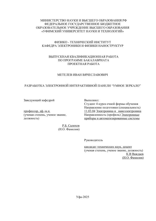 бакалавриат; ВКР; "Умное зеркало"; микроконтроллер; датчик Холла; управление светодиодной лентой; схемы устройства