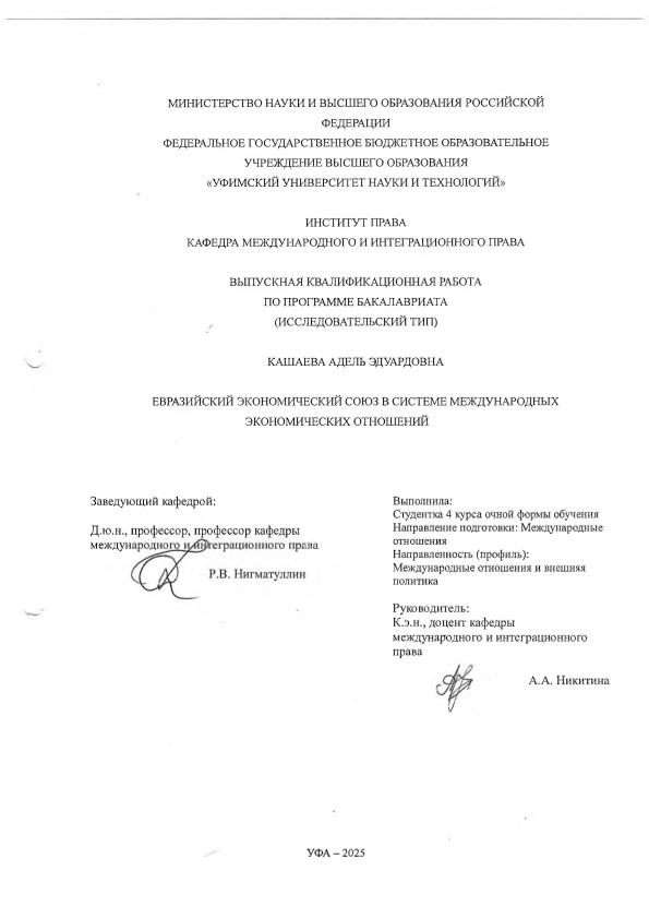 ВКР; бакалавриат; региональное сотрудничество; евразийская интеграция; ЕАЭС; интеграционные процессы; Республика Башкортостан