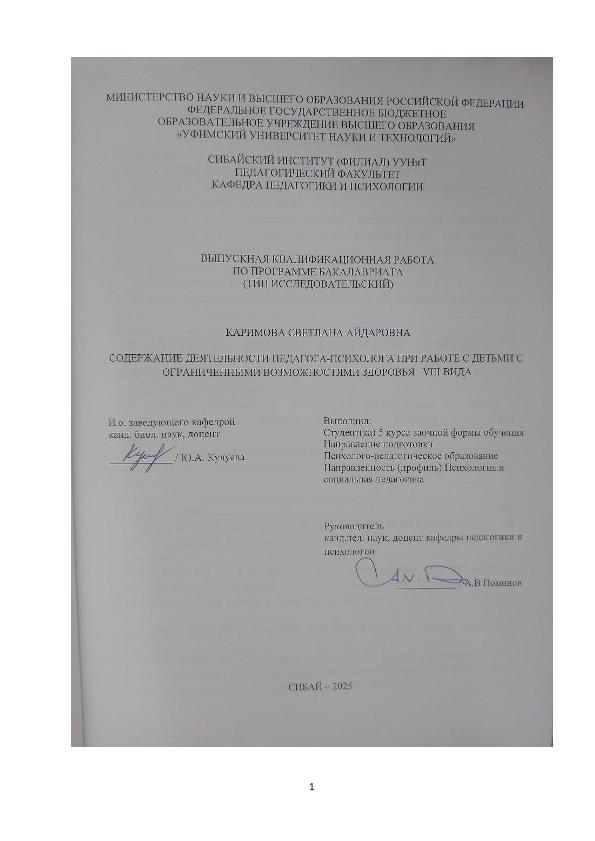 Психология; бакалавриат; ВКР; ОВЗ; деятельность; работа