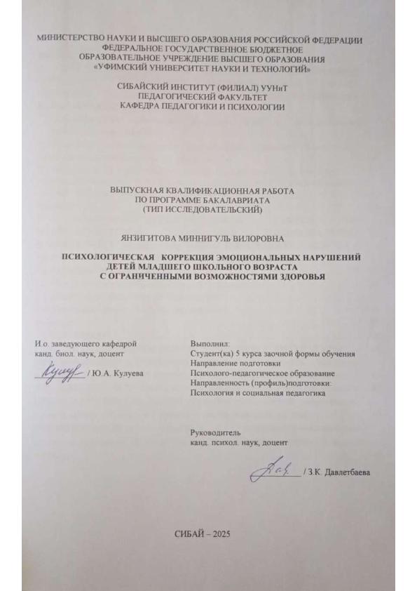 Психология; бакалавриат; ВКР; коррекция; нарушений; ОВЗ
