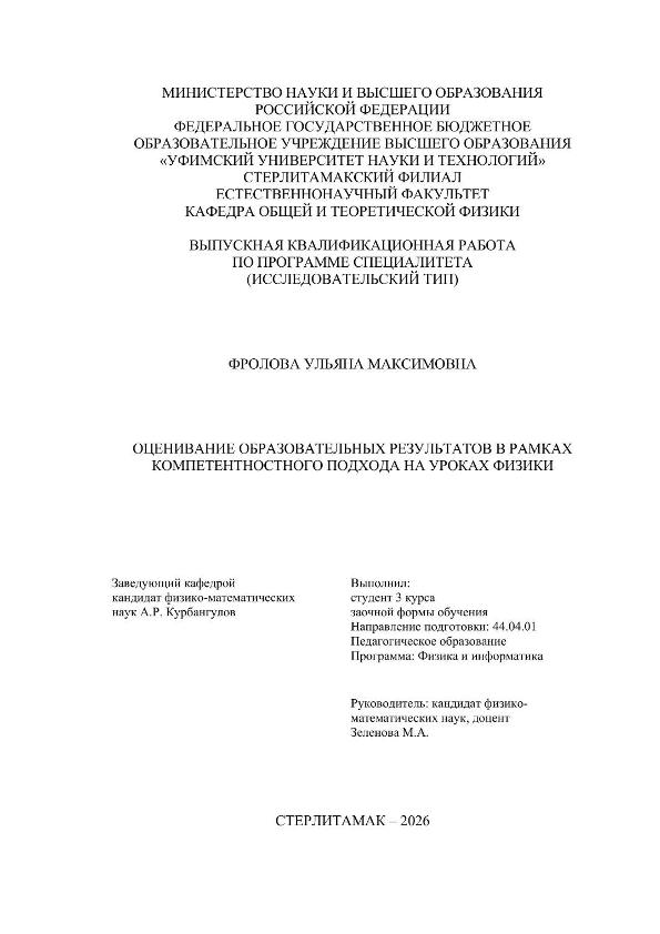 Педагогика; магистратура; ВКР; уроки физики; компетентностный подход