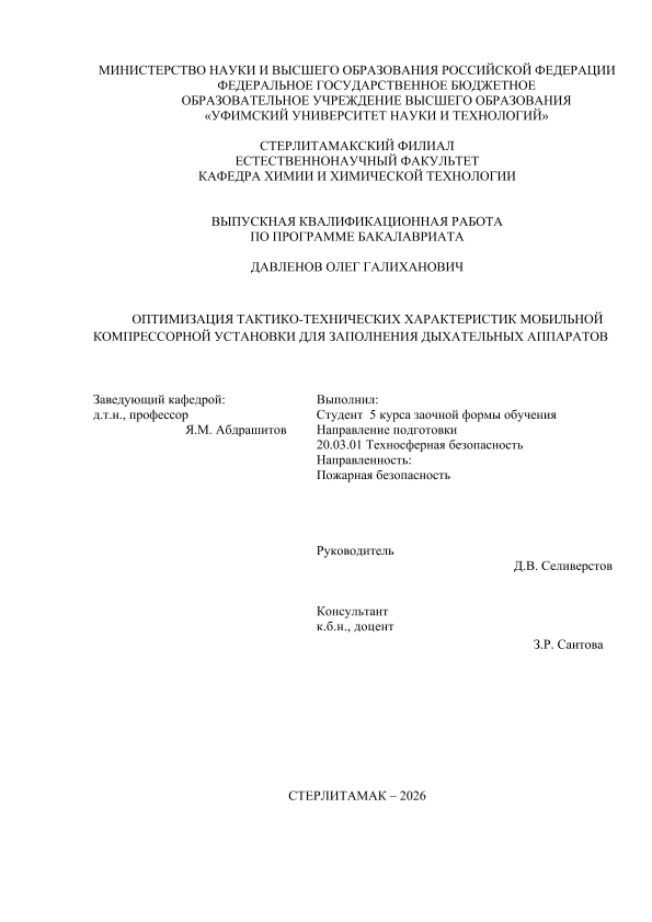 Пожарная безопасность; бакалавриат; ВКР; дыхательные аппараты