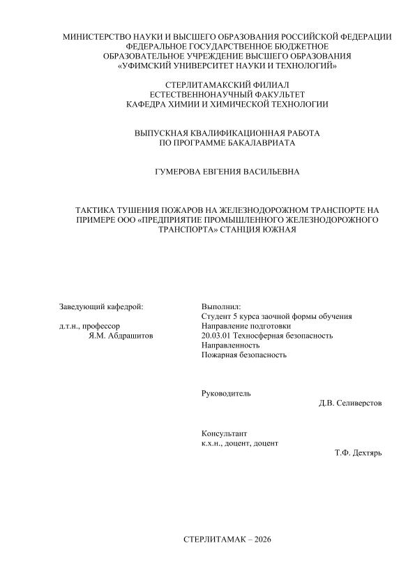 Пожарная безопасность; бакалавриат; ВКР; ООО «Газпром нефтехим Салават»; тушение пожара