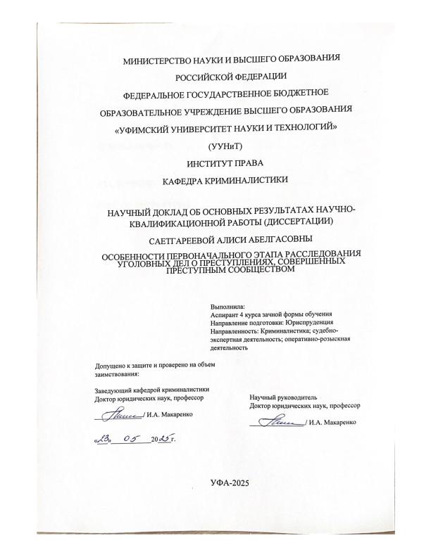 Уфимский университет науки и технологий. Институт права. Кафедра криминалистики