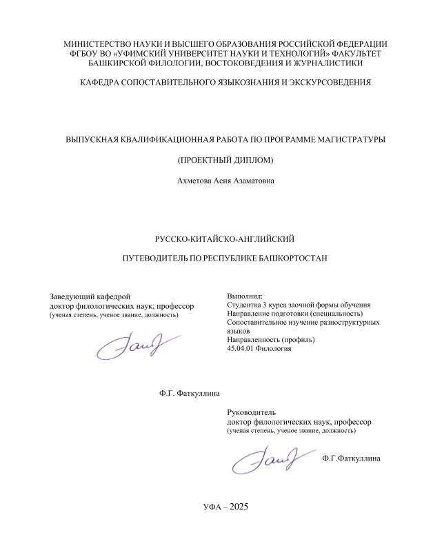 ВКР; магистратура; английский язык; китайский язык; путеводители; Республика Башкортостан