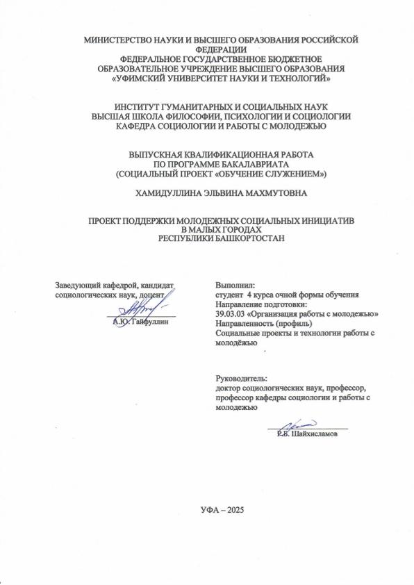 ВКР; бакалавриат; молодежь; социальные инициативы; малые города; Республика Башкортостан