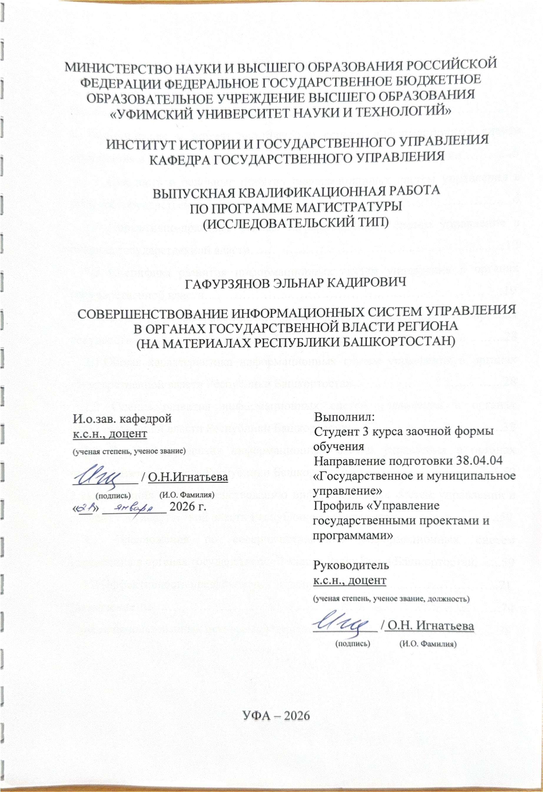 ВКР; магистратура; органы государственной власти; информационные системы управления; нормативно-правовые основы; Республика Башкортостан