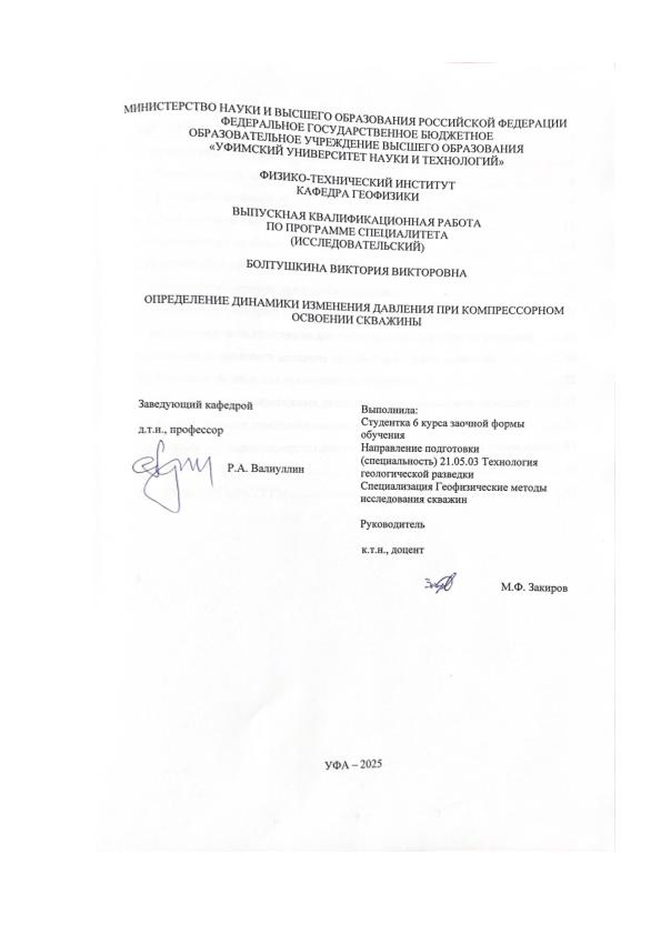 ВКР; специалитет; свабирование скважин; компрессорное освоение; геофизические исследования; давление; температура; каротажные данные