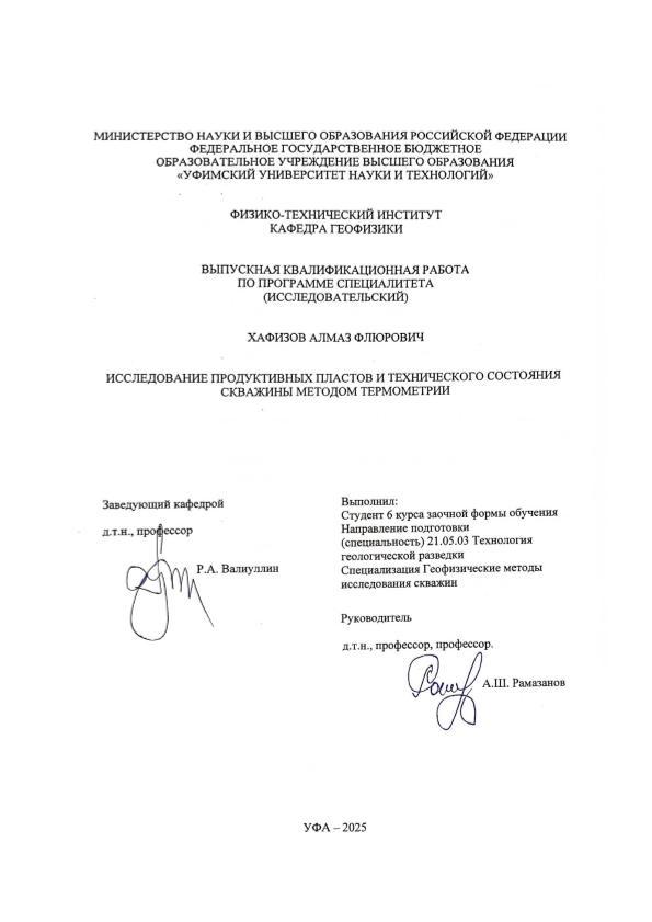 ВКР; специалитет; геофизические исследования скважин; термометрия; продуктивные пласты; техническое состояние