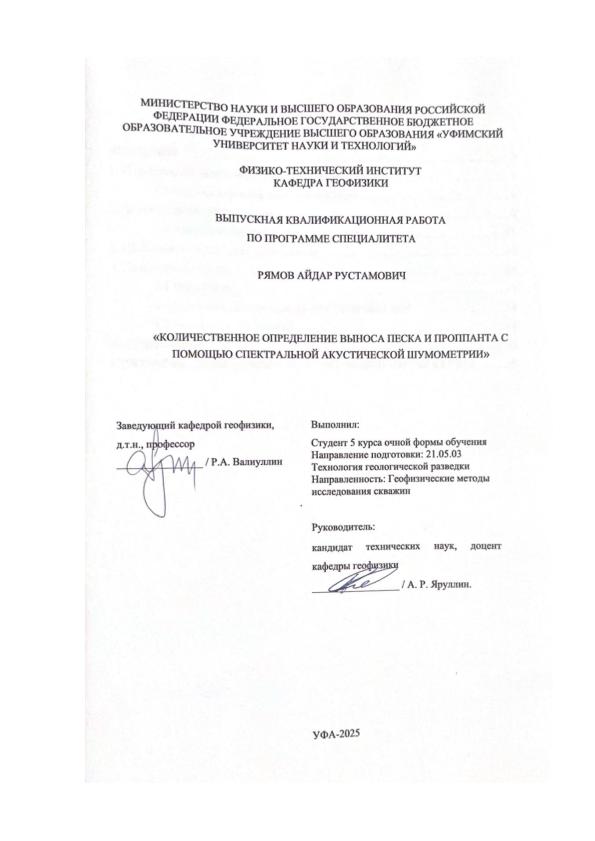 ВКР; специалитет; спектральная акустическая шумометрия; скважины; твердые выносимые частицы; вынос песка; вынос проппанта