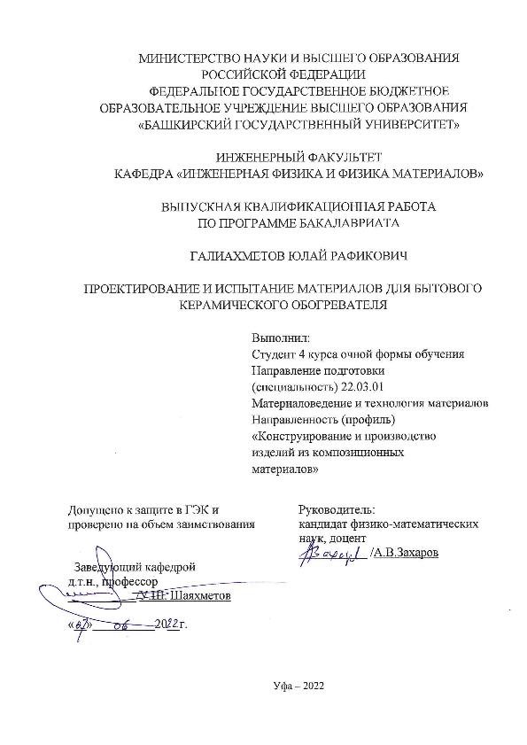 Техника — Материаловедение; бакалавриат; ВКР; трубчатые керамические изделия; электроподогрев жидкости; композиционные материалы