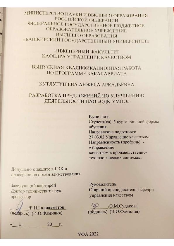 Уфимский университет науки и технологий. Инженерный факультет. Кафедра "Управление качеством"