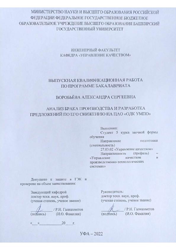 Башкирский государственный университет. Инженерный факультет. Кафедра управление качеством