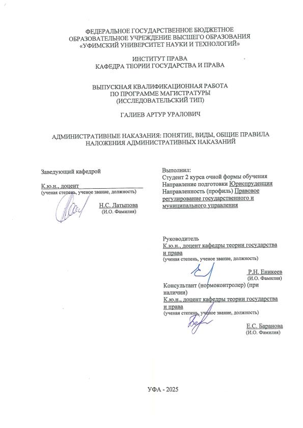 ВКР; магистратура; административные наказания; административная ответственность; административные правонарушения