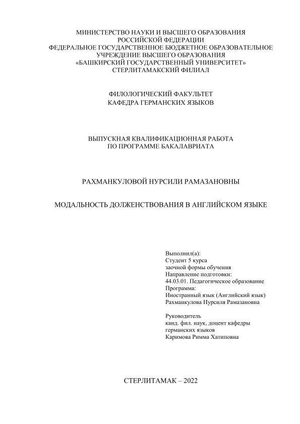 Педагогическое образование; Иностранный язык (английский); бакалавриат; ВКР; английский язык; модальные глаголы; долженствования в английском языке