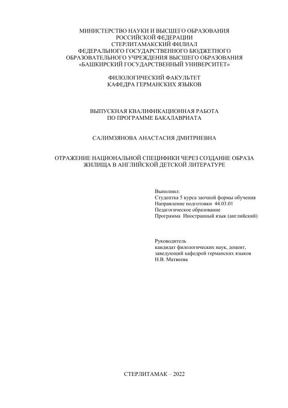Педагогическое образование; Иностранный язык (английский); бакалавриат; ВКР; английский язык; английская детская литература; национальная специфика