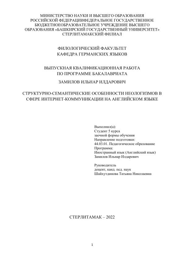 Педагогическое образование; Иностранный язык (английский); бакалавриат; ВКР; английский язык; неологизм; новая лексика