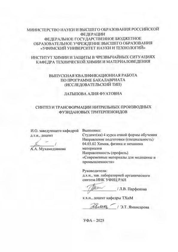 Subjects: ВКР; бакалавриат; фузидовая кислота; тетразольные производные; антибактериальные свойства; тритерпеноиды; природные антибиотики