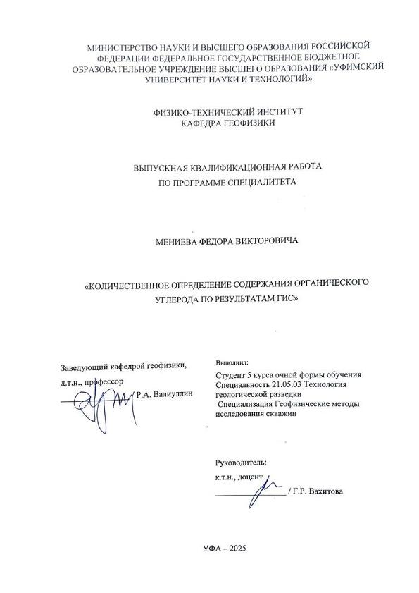 Subjects: ВКР; специалитет; органический углерод; геофизические исследования скважин; базальный интервал