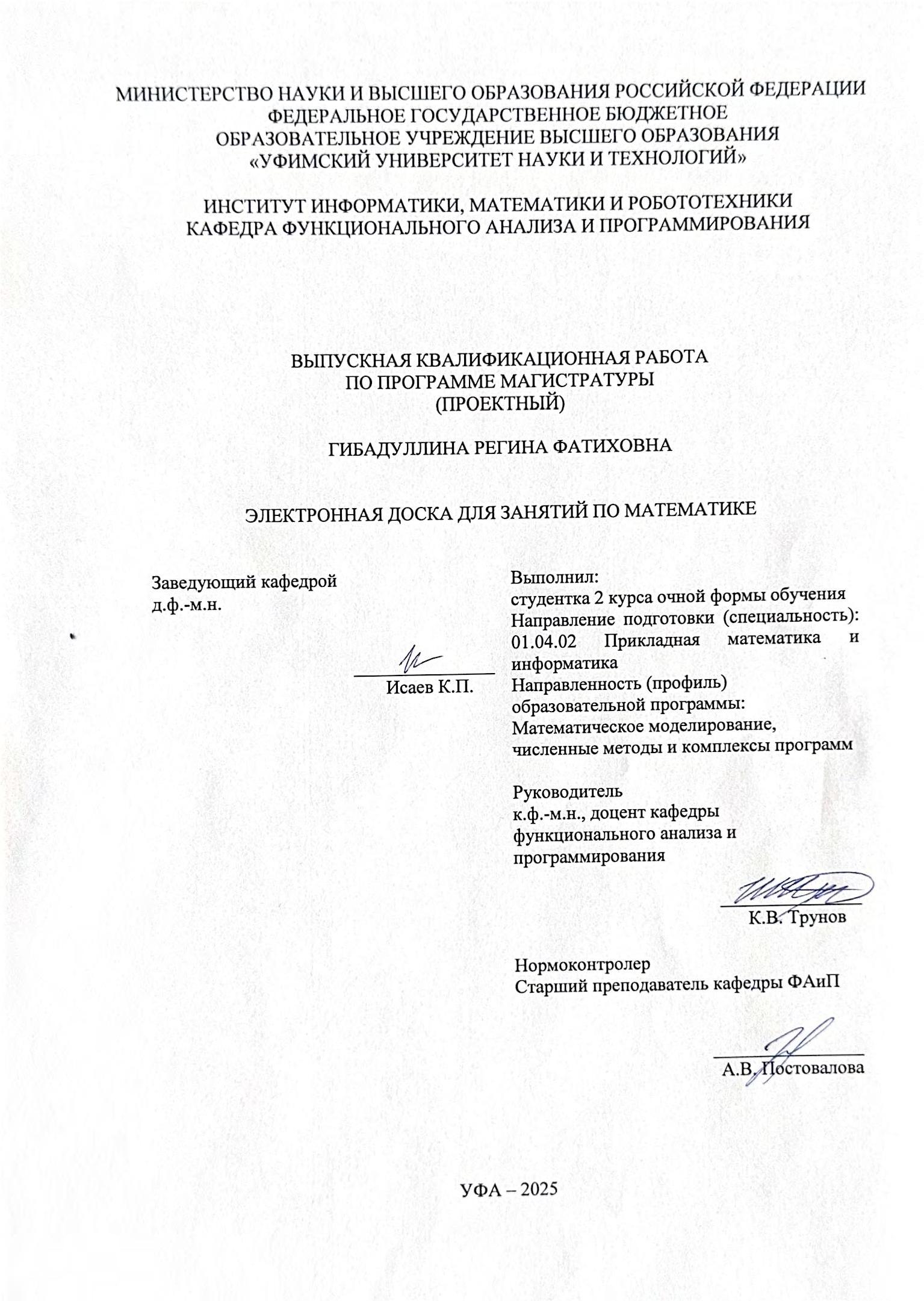 | Organization: | Уфимский университет науки и технологий. Институт информатики, математики и робототехнике. Кафедра функционального анализа и программирования |