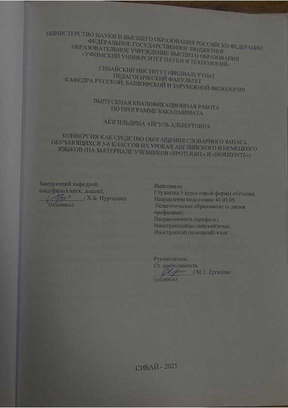 Иностранный язык; бакалавриат; ВКР; понятие; конверсия; обогощение