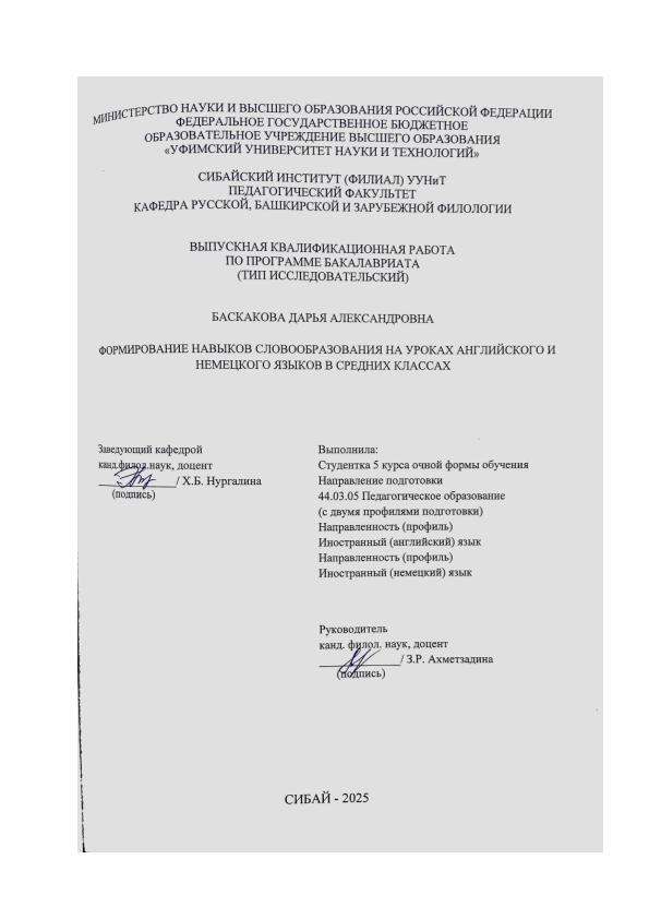 Иностранный язык; бакалавриат; ВКР; словарный запас; словообразование; изучить