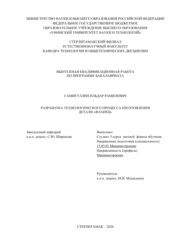 Техника; бакалавриат; ВКР; изготовление детали «Фланец»