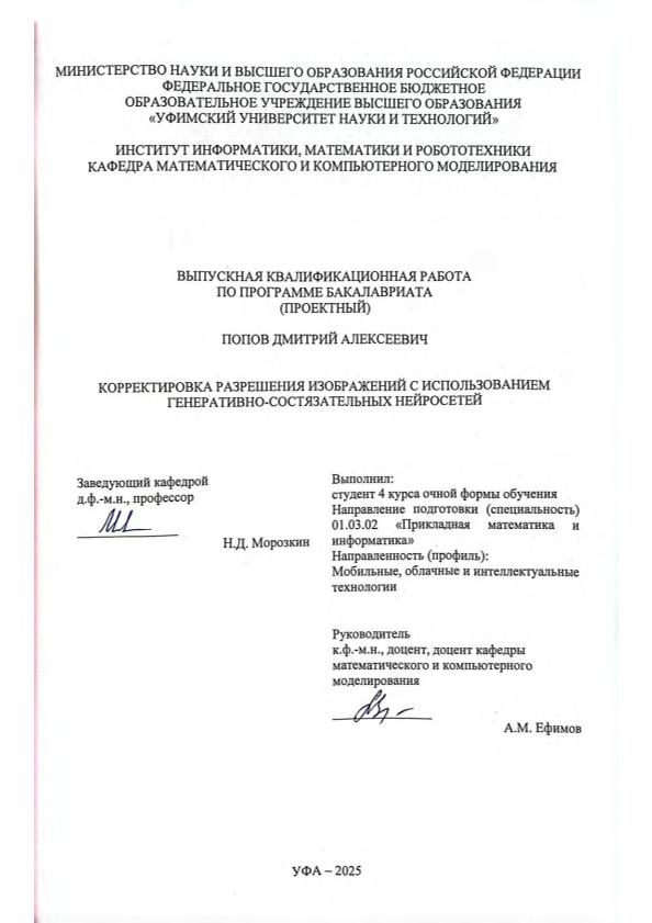ВКР; бакалавриат; улучшение разрешения изображений; методы увеличения; нейронные сети; язык программирования Python; состязательная сеть ESRGAN; FastAPI