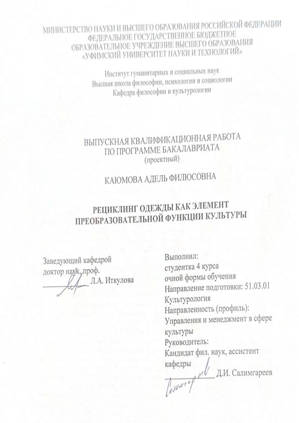 ВКР; бакалавриат; рециклинг одежды; мода; имидж-терапия; культурная антропология; постиндустриальное общество