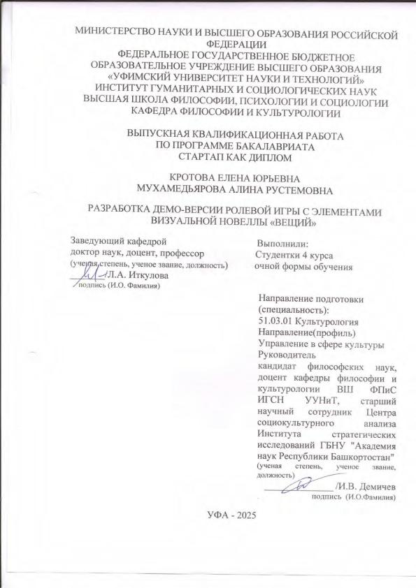 ВКР; бакалавриат; цифровое искусство; игровая индустрия; видеоигра; проект демо-версии