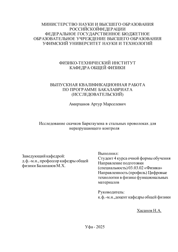 ВКР; бакалавриат; эффект Беркгаузена; ферромагнетики; стальные проволоки; неразрушающий контроль