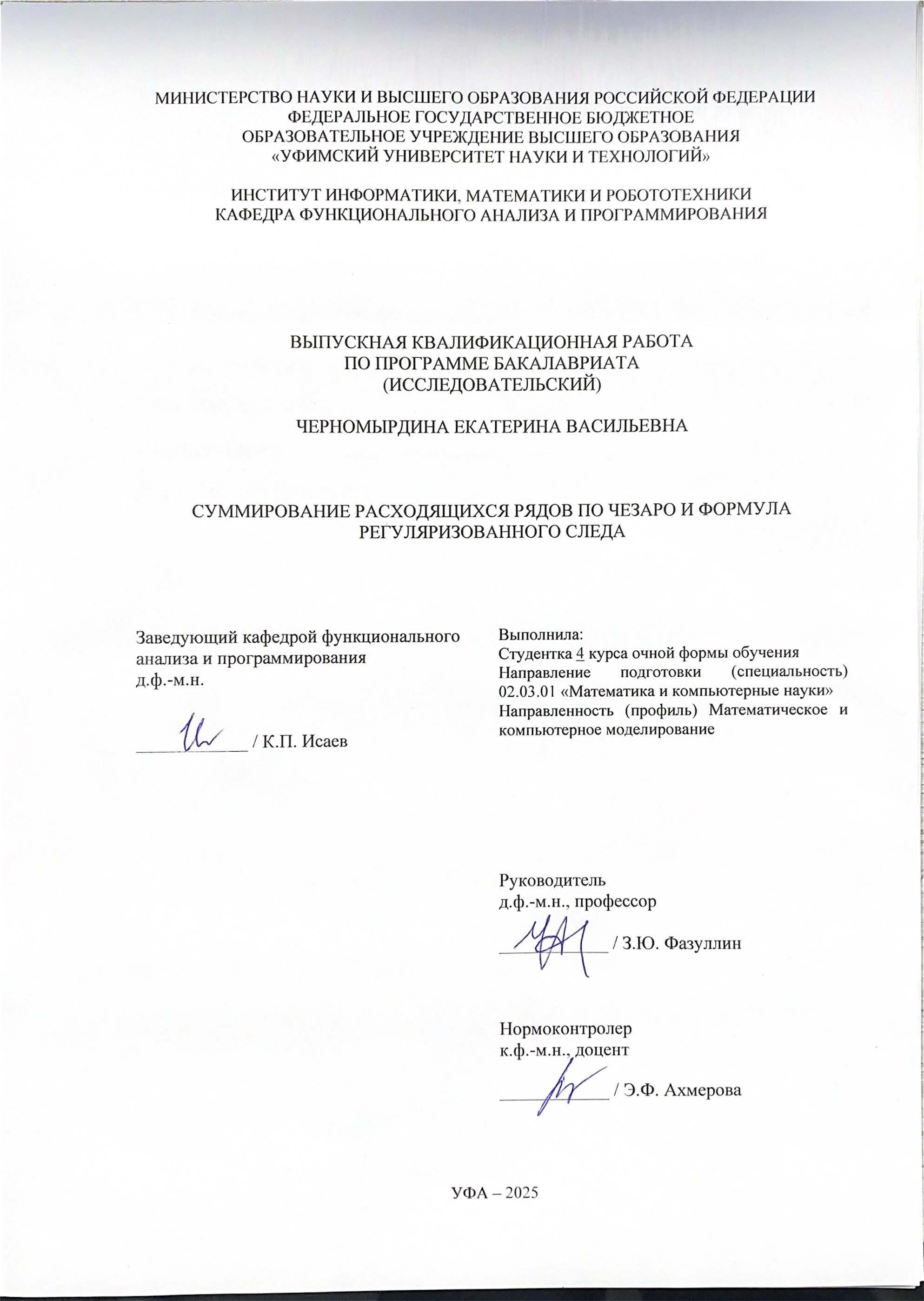Уфимский университет науки и технологий (УУНиТ). Институт информатики, математики и робототехники. Кафедра функционального анализа и программирования