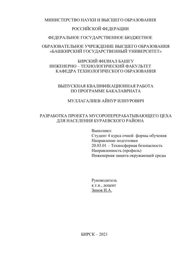 Экология — Управление отходами; бакалавриат; ВКР; бытовые отходы; переработка мусора; мусороперерабатывающие заводы