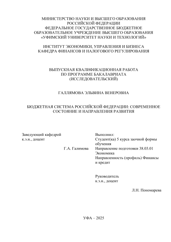 Organization: Уфимский университет науки и технологий. Институт экономики, управления и бизнеса. Кафедра финансов и налогового регулирования