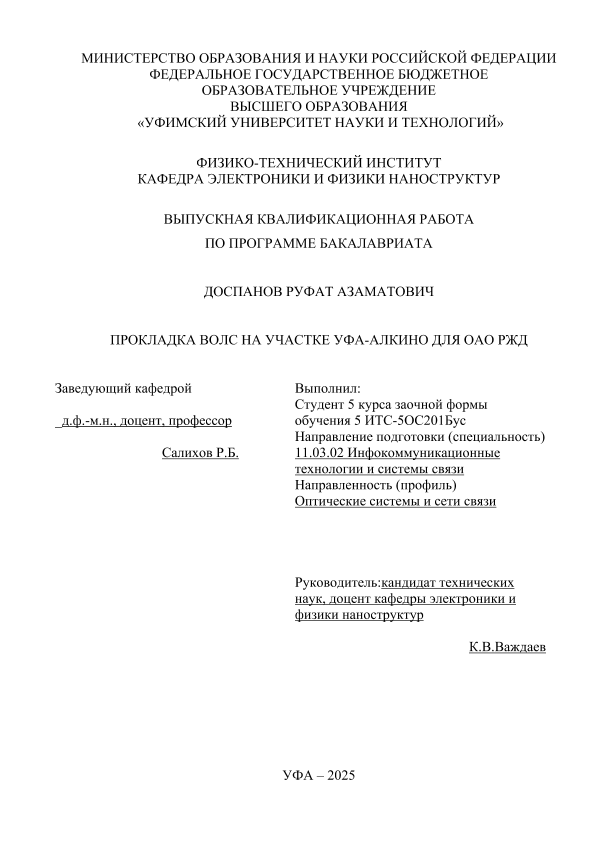 Subjects: бакалавриат; ВКР; волоконно-оптические линии связи (ВОЛС); оптическая транспортная сеть; виды железнодорожной связи; оборудование