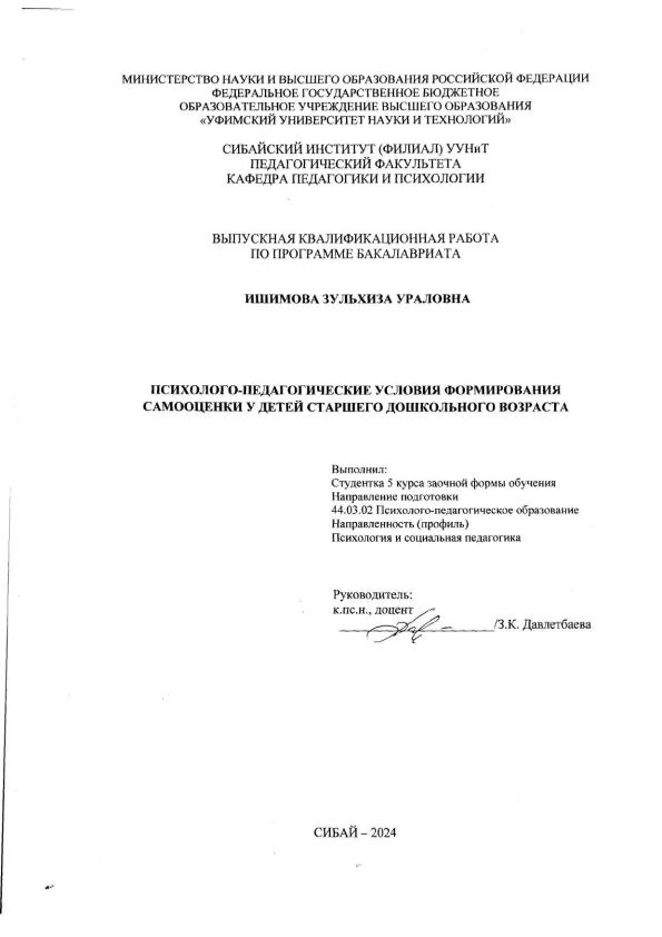 Психология и социальная педагогика; бакалавриат; ВКР; дошкольный возраст; обучение; воспитание