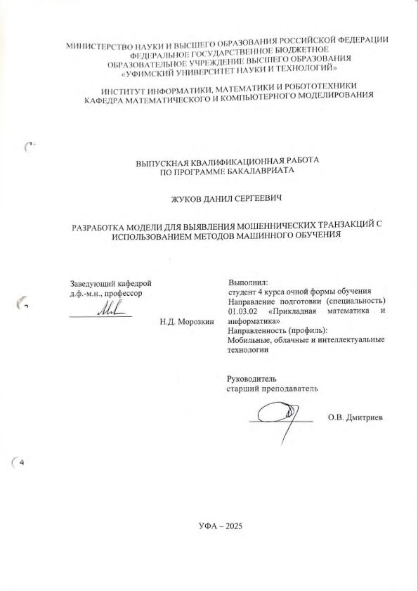 Subjects: ВКР; бакалавриат; методы машинного обучения; искусственные нейронные сети; выявление аномальных (мошеннических) транзакций; кросс-валидация; классификационные метрики
