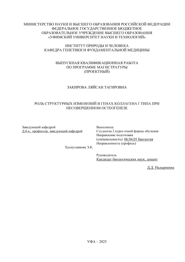ВКР; магистратура; несовершенный остеогенез; ген COL1A1; коллаген; мутации; секвенирование