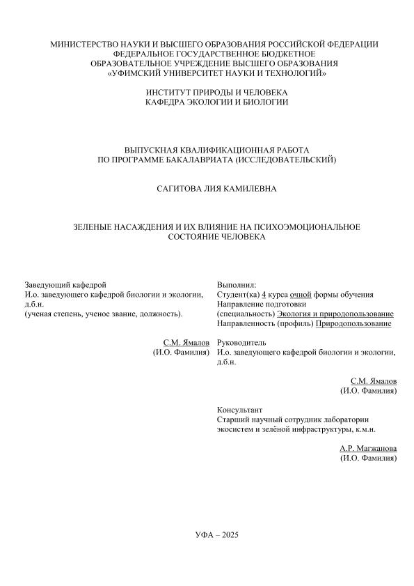 ВКР; бакалавриат; городская среда; зеленые насаждения; психоэмоциональное состояние; ландшафтная терапия