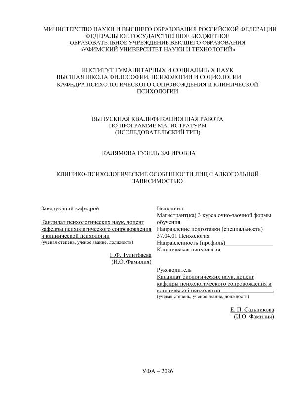 магистратура; ВКР; алкогольная зависимость; аддиктивное поведение личности; клинико-психологические особенности; диагностика