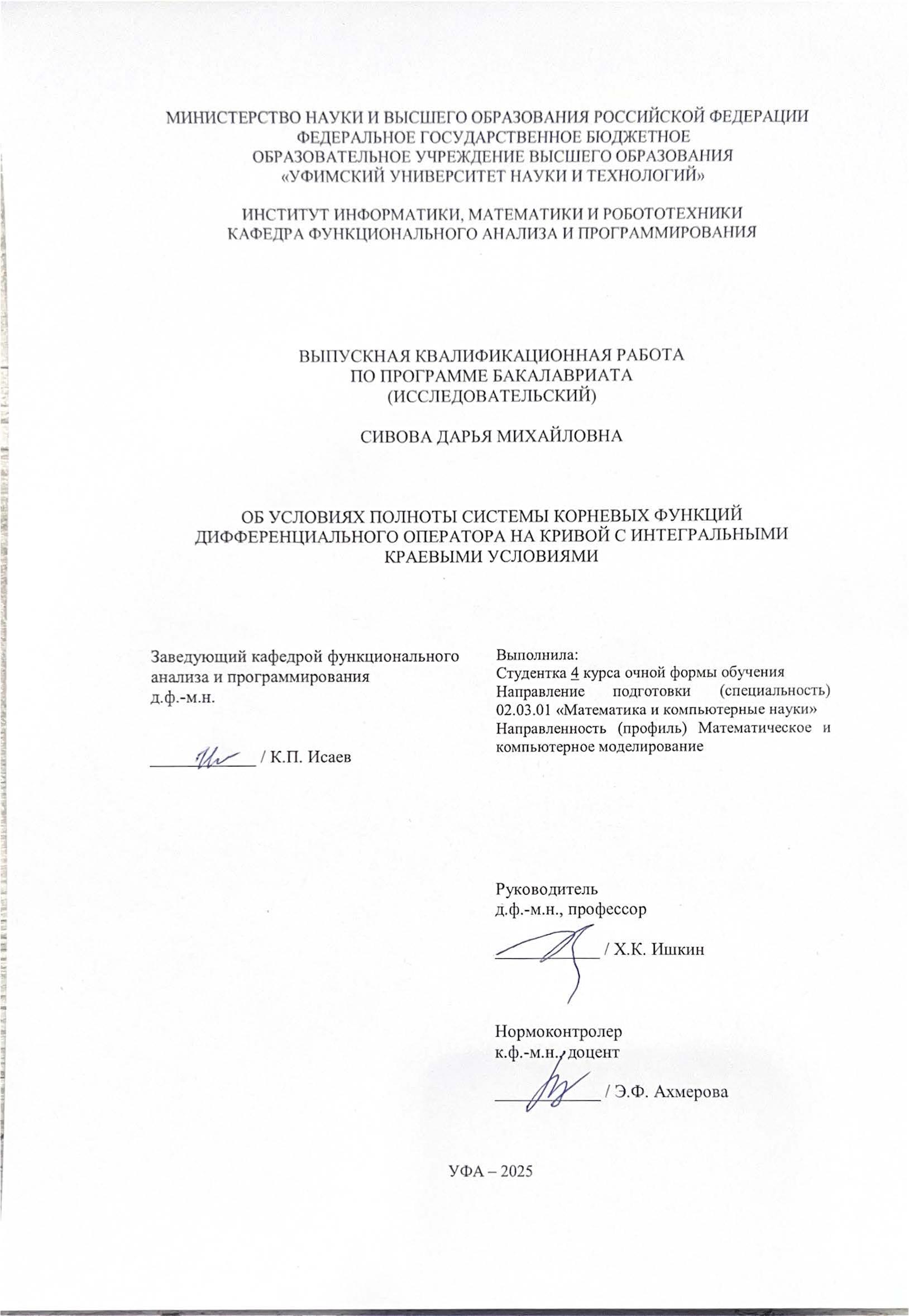 Organization: Уфимский университет науки и технологий (УУНиТ). Институт информатики, математики и робототехники. Кафедра функционального анализа и программирования