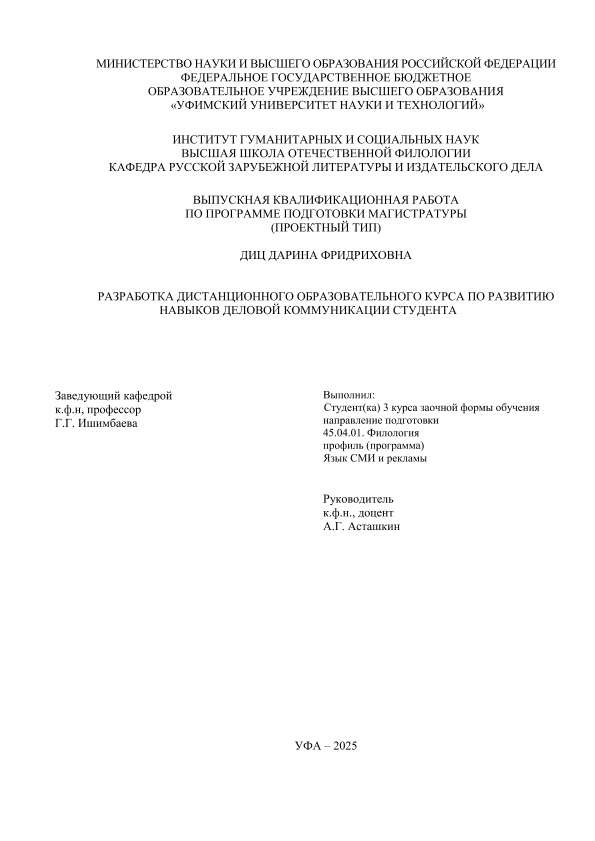 ВКР; магистратура; деловая коммуникация; цифровые образовательные ресурсы; онлайн-курсы; разработка дистанционного образовательного курса; комбинированный лендинг