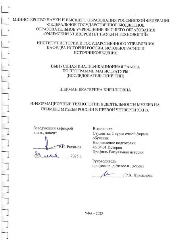 ВКР; магистратура; музейное дело; информационные технологии; интерактивные экспонаты; музеи России; цифровизация