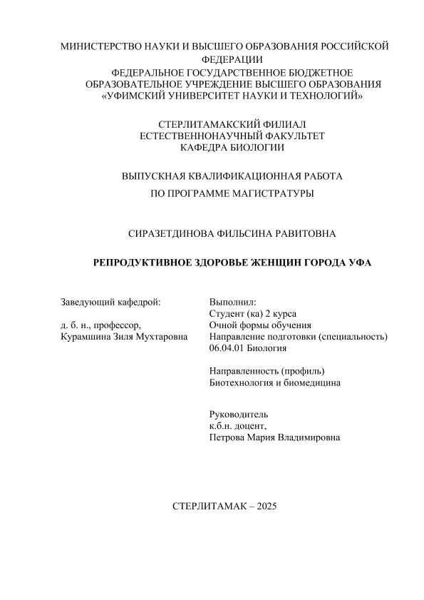 Медицина; магистратура; ВКР; репродуктивное здоровье