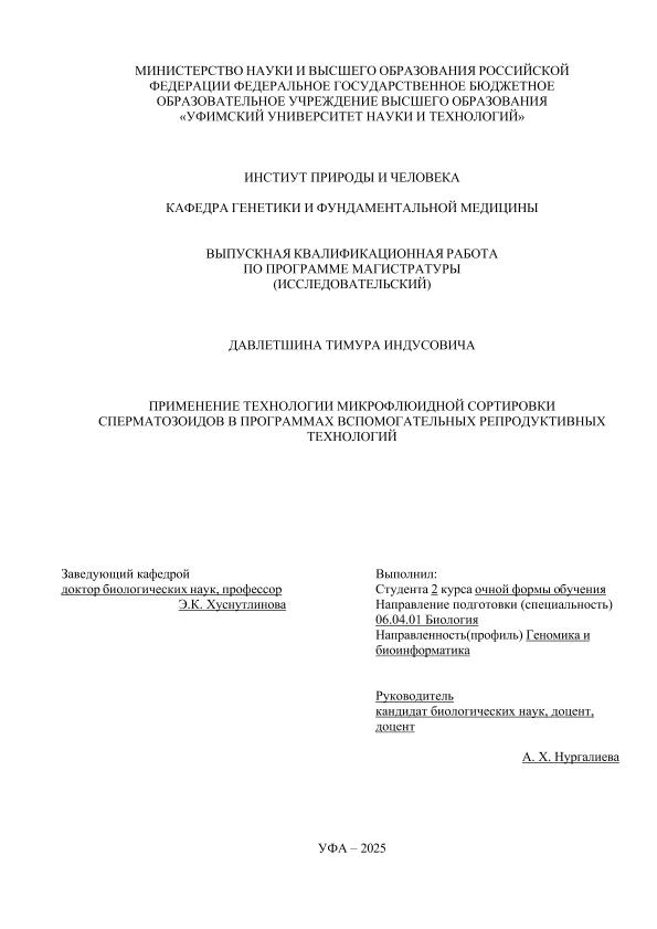 ВКР; магистратура; вспомогательные репродуктивные технологии; микрофлюидика; сперматозоиды; фертильность; бесплодие